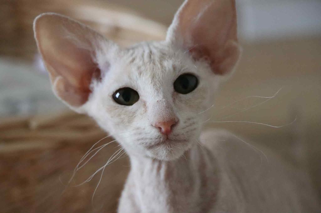 Arrivée récemment dans le concert des nations félinotechniques, la Russie se devait d’avoir ses races félines. L’histoire du Peterbald commence en 1994 à St Petersbourg sous l’impulsion d’Olga S. Mironova avec l’union d’un mâle Donskoy, race de chats nus découverte et sélectionnée à Rostov sur le Don à la fin des années 1980, et d’une chatte Orientale. L’idée d’Olga était de combiner la grâce et l’élégance de l’Oriental avec la peau de pêche du Donskoy. La fourrure ultra courte du Peterbald était en effet un moyen de mettre en valeur la morphologie et le type Oriental. Pas de poil superflu qui masque l’élégance d’une encolure ou épaissit une queue ! Petit à petit, les mariages avec les Donskoy furent donc interdits pour ne plus autoriser que ceux avec des Siamois et des Orientaux.