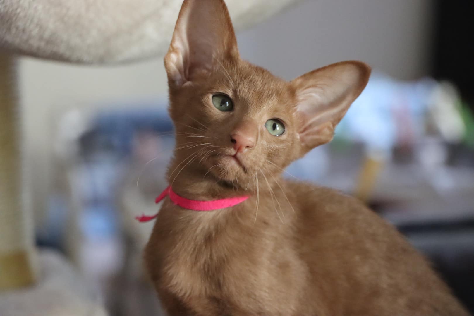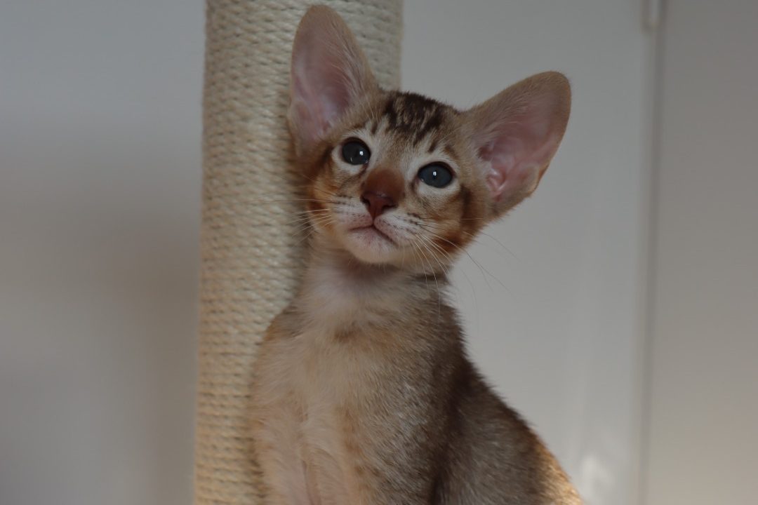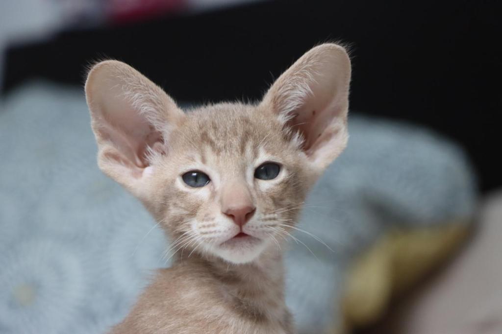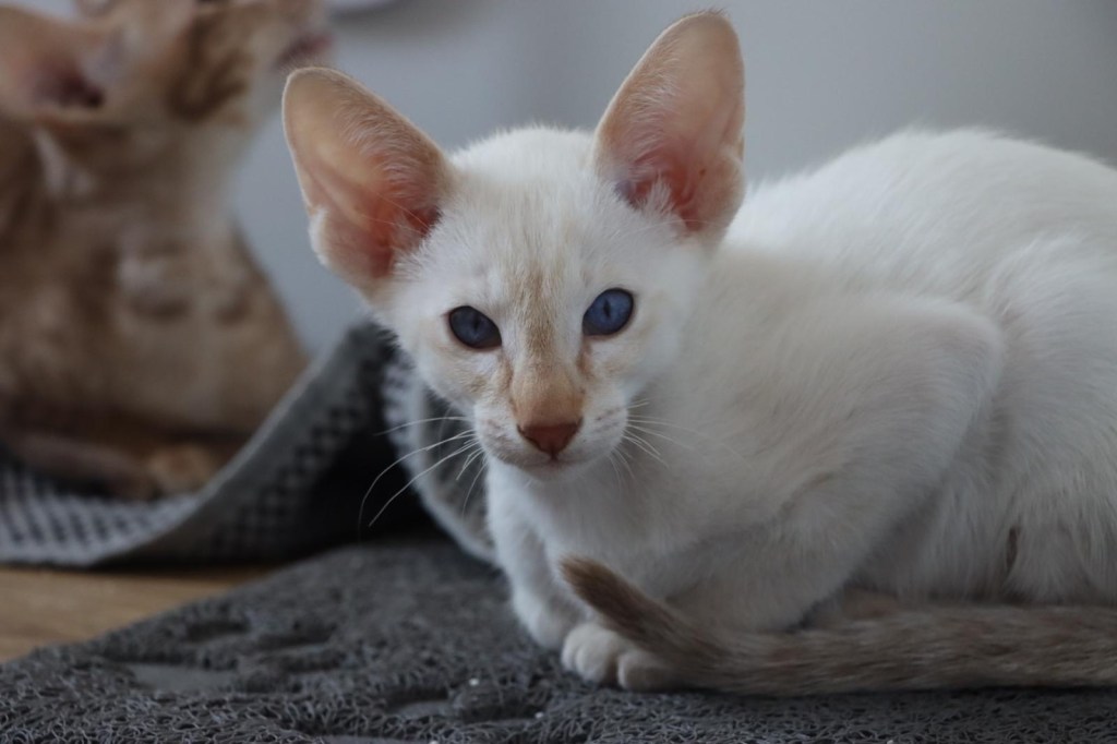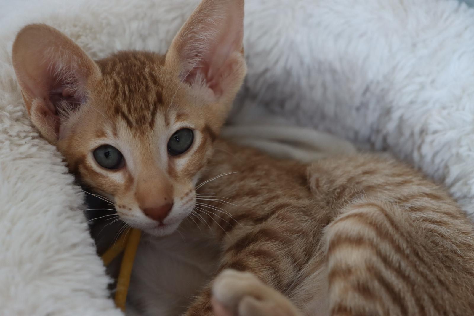 Chez l’Oriental, associé au motif spotted tabby, il offre une robe particulièrement délicate et lumineuse.