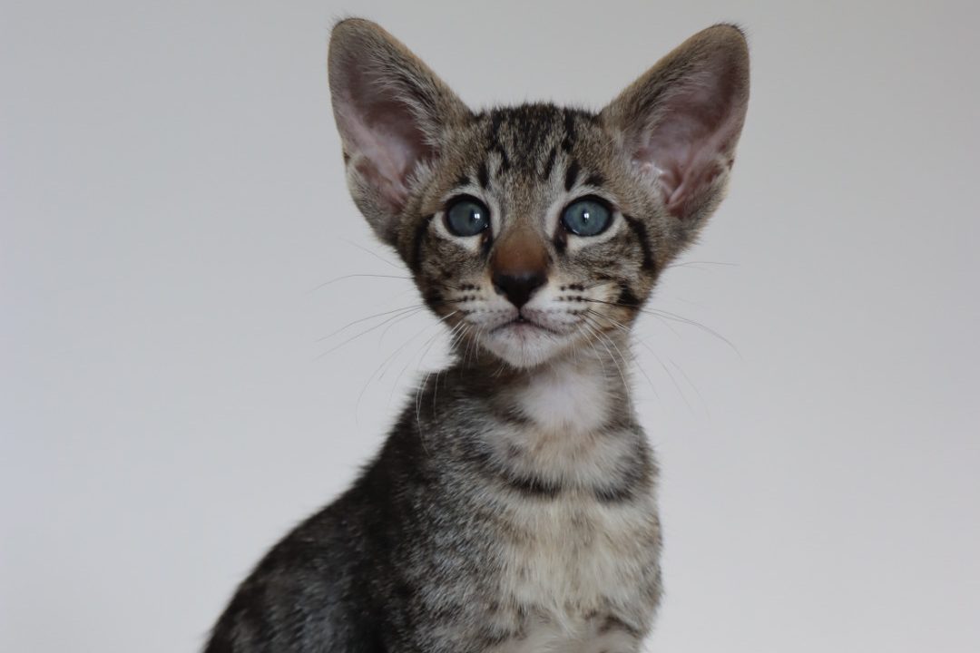 Chez l’Oriental, la couleur chocolat peut également se décliner en versions tabby (tigré), où le brun chaud de base s’accompagne de jolis motifs naturels qui apportent encore plus de relief et d’expression à la robe.